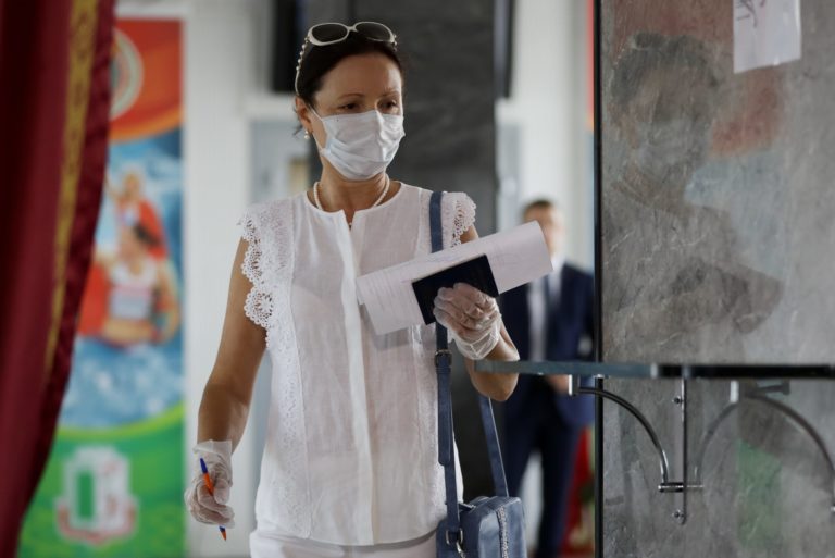 Žena sa chystá hlasovať v bieloruských prezidentských voľbách. Foto: SITA/AP