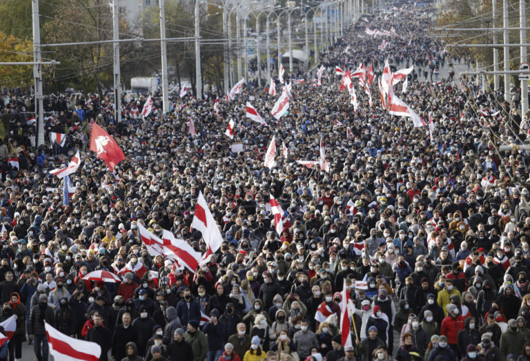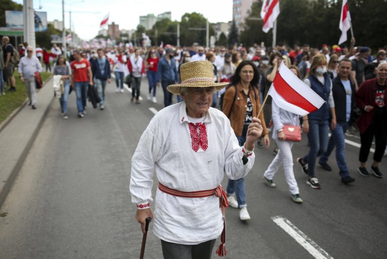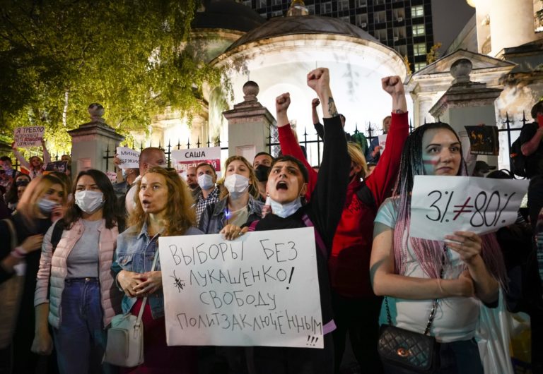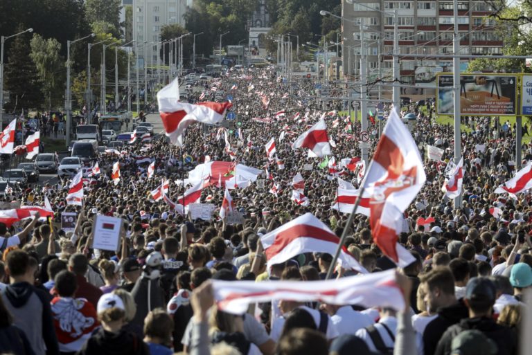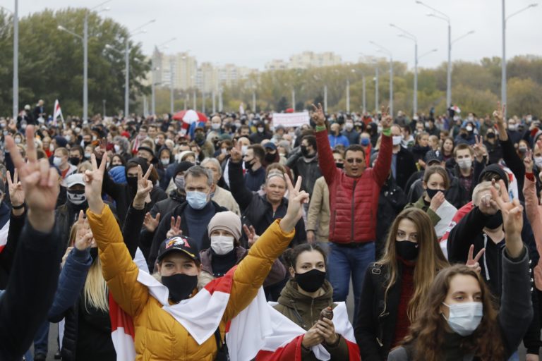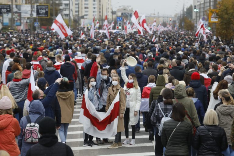 Protesty ľudí neutíchajú v Bielorusku ani po vyše dvoch mesiacoch od prezidentských volieb. Foto: SITA/AP