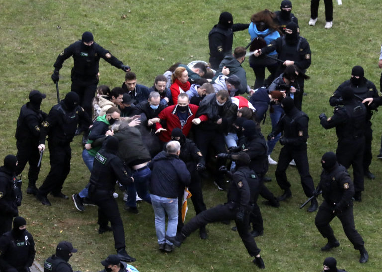 Polícia v Bielorusku tvrdo zakročila proti demonštrantom. Minsk, 12. október 2020 Foto: SITA/AP