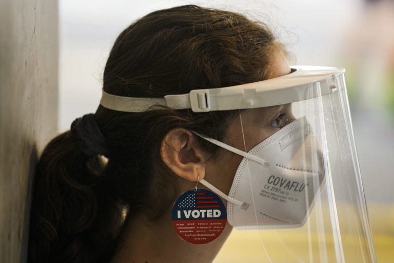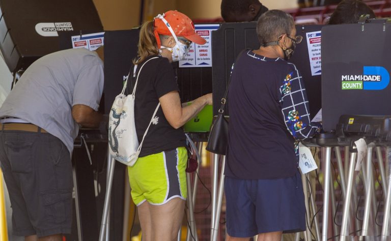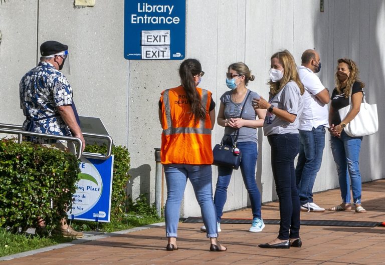 Ľudia volia svojho budúceho amerického prezidenta aj v Miami-Dade County. 3. november 2020 Foto: Pedro Portal/Miami Herald via AP