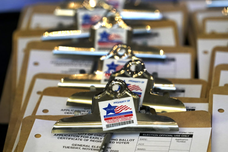 Registračný formulár pre voličov. V Spojených štátoch amerických sa v utorok 3. novembra konajú prezidentské voľby. Verejnosť má na výber medzi aktuálnym prezidentom Donaldom Trumpom a bývalým viceprezidentom Joeom Bidenom. USA, 3. novembra 2020 Foto: SITA/AP