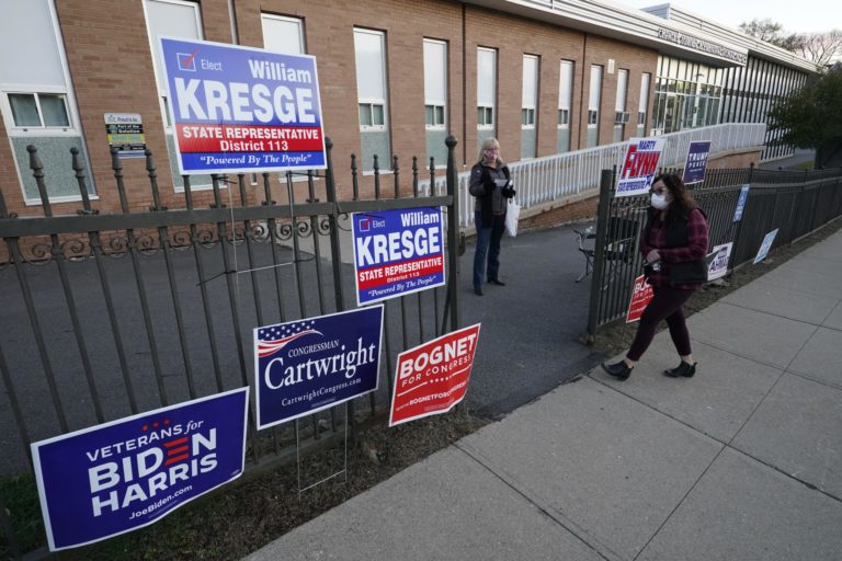 Voliči prichádzajú do volebných okrskov, kde môžu odovzdať svoj hlas v prezidentských voľbách 2020 v USA. Scranton, Pensylvania 3. november 2020 Foto: SITA/AP