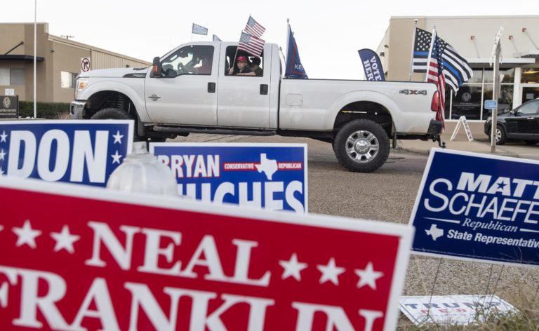 Voliči vchádzajú do volebnej miestnosti v texaskej Odese, aby mohli hlasovať v prezidentských voľbách v USA. 3. november 2020 Foto: Odessa American/Odessa American via AP