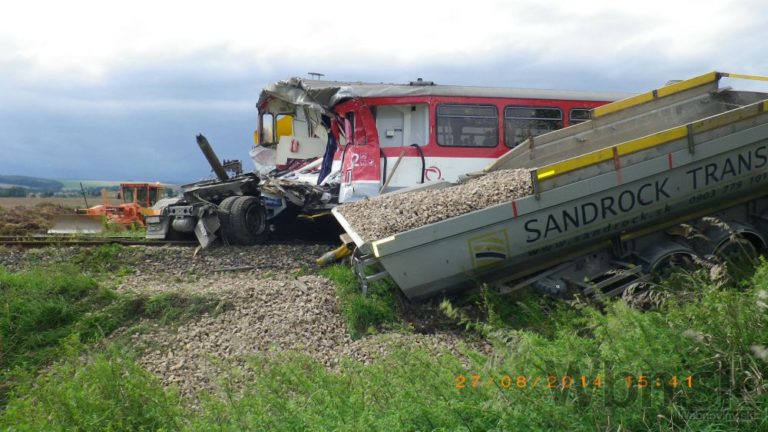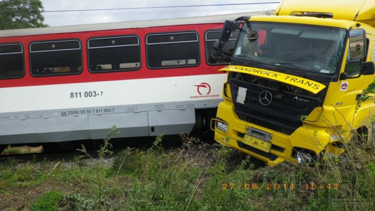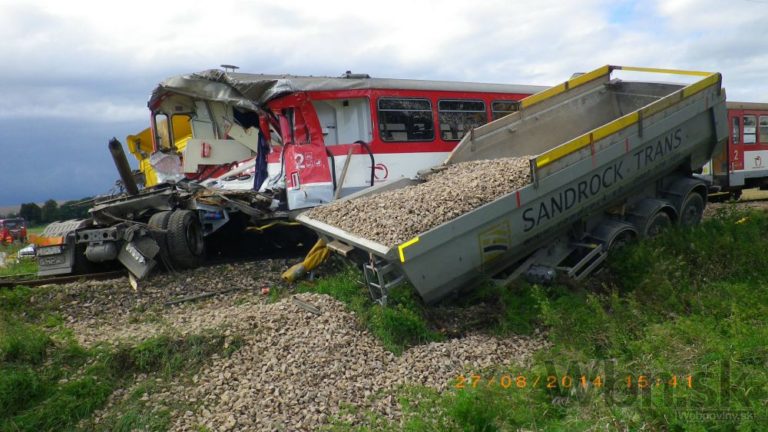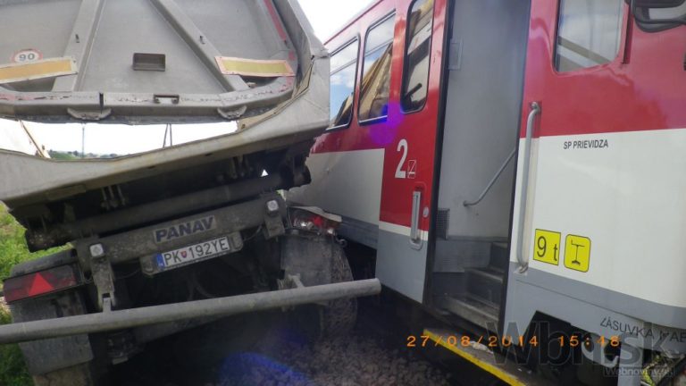 Na nechránenom železničnom priecestí medzi Bánovcami nad Bebravou a obcou Rybany sa zrazil osobný vlak s nákladným autom. Zdravotníci ošetrovali štrnásť zranených z vlaku, z toho štyri až päť osôb utrpelo ťažké zranenia. Medzi ťažko zranenými je aj rušňovodič. Bratislava, 28. august 2014.