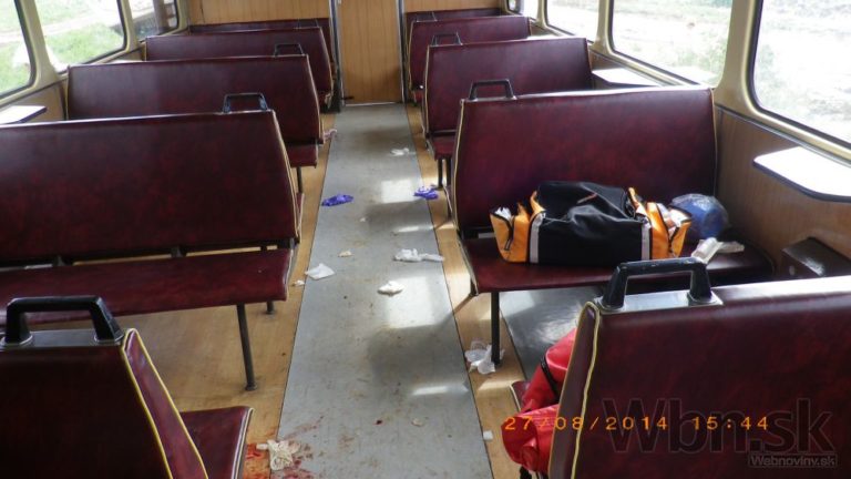 Na nechránenom železničnom priecestí medzi Bánovcami nad Bebravou a obcou Rybany sa zrazil osobný vlak s nákladným autom. Zdravotníci ošetrovali štrnásť zranených z vlaku, z toho štyri až päť osôb utrpelo ťažké zranenia. Medzi ťažko zranenými je aj rušňovodič. Bratislava, 28. august 2014. Foto: SITA/Prezídium HaZZ
