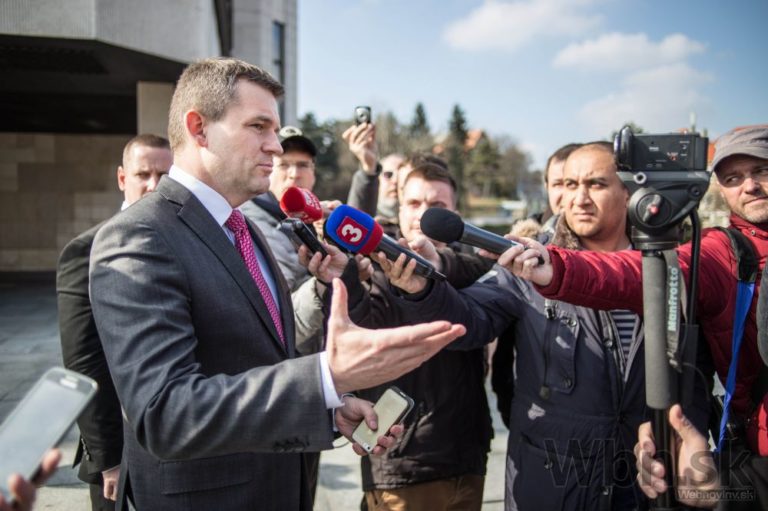 Predseda Národnej rady SR Peter Pellegrini (vľavo) v rozhovore s novinármi počas protestu proti výstavbe garáží na Bratislavskom hrade. Bratislava, 27. február 2015. Foto: SITA/Katarína Acél - Gáliková