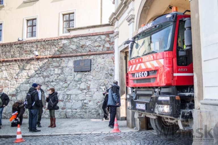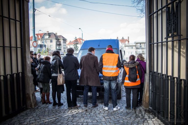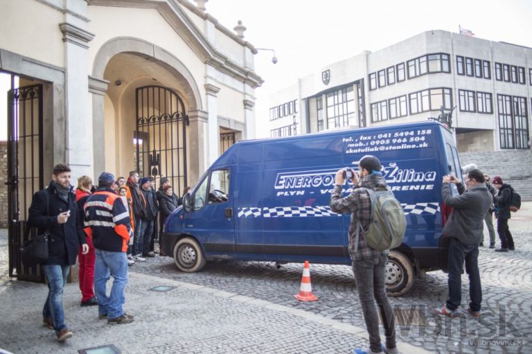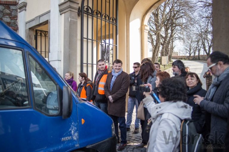 Účastníci protestu proti výstavbe garáží na Bratislavskom hrade. Protestné zhromaždenie sa rozhodlo zablokovať prístup nákladných vozidiel do areálu Bratislavského hradu. Organizátorom je združenie Krásy pamiatok na Slovensku. Bratislava, 27. február 2015. Foto: SITA/Katarína Acél - Gáliková