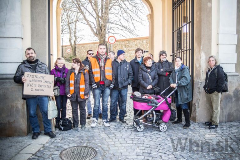 Účastníci protestu proti výstavbe garáží na Bratislavskom hrade. Organizátorom je združenie Krásy pamiatok na Slovensku. Bratislava, 27. február 2015. Foto: SITA/Katarína Acél - Gáliková