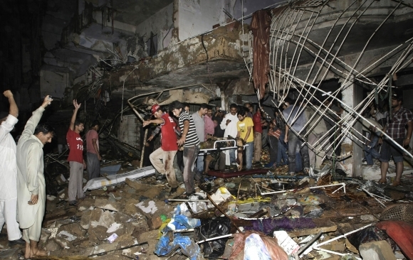 Dvojitý bombový útok si v nedeľu v najväčšom pakistanskom meste Karáči vyžiadal životy 45 ľudí a ďalších 150 zranil. K explózii prišlo neďaleko šiitskej mešity. Foto: SITA, AP