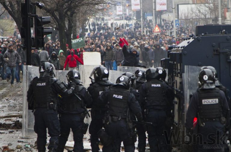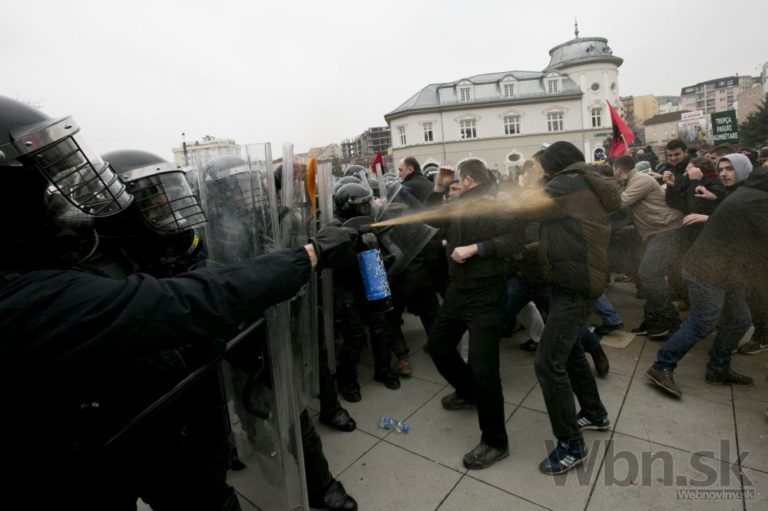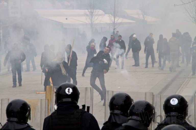 Protestujúci v utorok pred sídlom kosovskej vlády útočili na políciu kameňmi a ďalšími objektmi, zranenia utrpeli desiatky ľudí.