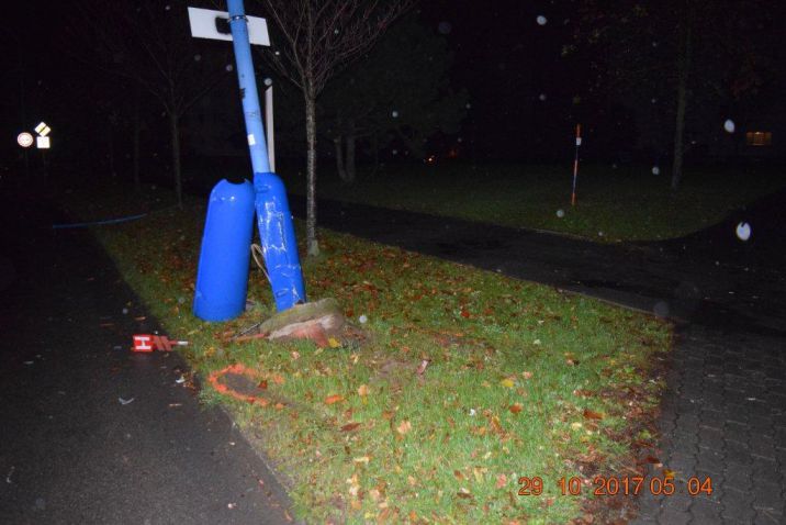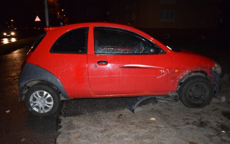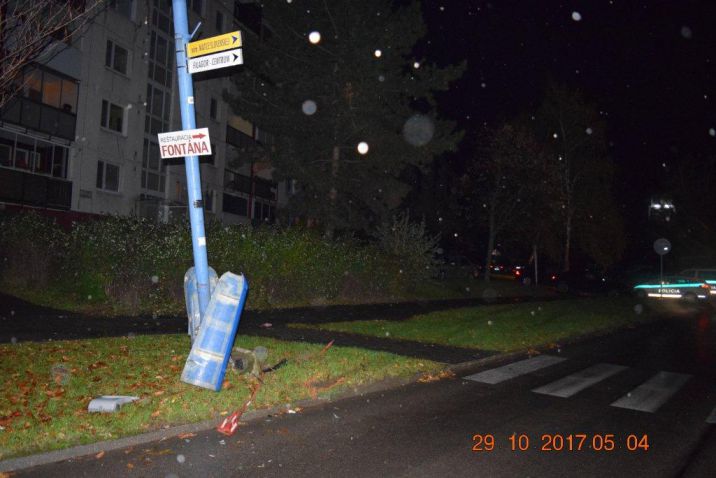 V nedeľu nadránom v Dubnici nad Váhom sa 23-ročná Barbora na križovatke dostatočne nevenovala vedeniu vozidla a narazila do stĺpa pouličného osvetlenia. Mladá vodička sa pri nehode nezranila. Dopravní policajti, ktorí boli privolaní na miesto nehody, podrobili vodičku dychovej skúške. Barbore namerali 2,04 promile alkoholu. Bratislava, 31. október 2017. Foto: SITA/KR PZ Trenčín