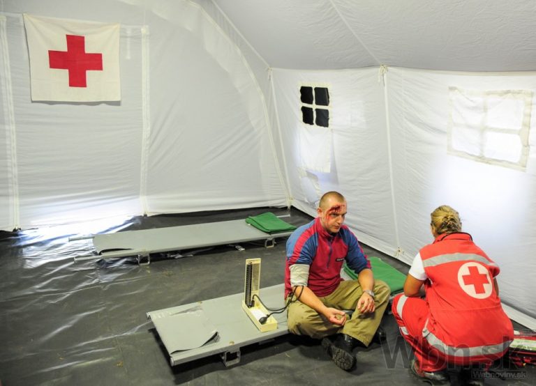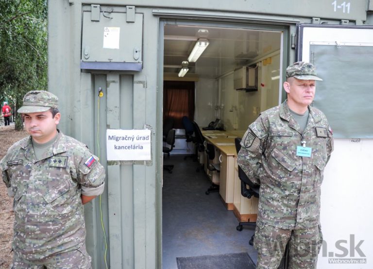 Spoločné cvičenie príslušníkov Ozbrojených síl SR a Ministerstva vnútra SR s názvom "Nový horizont 2015" v priestoroch 12. mechanizovaného práporu v Krškanoch v Nitre a vo Výcvikovom priestore Kolíňanský vrch, počas ktorého si účastníci precvičili spoločný postup v prípade prílevu masívnej vlny utečencov z územia susedného štátu. Foto: SITA/Martin Havran