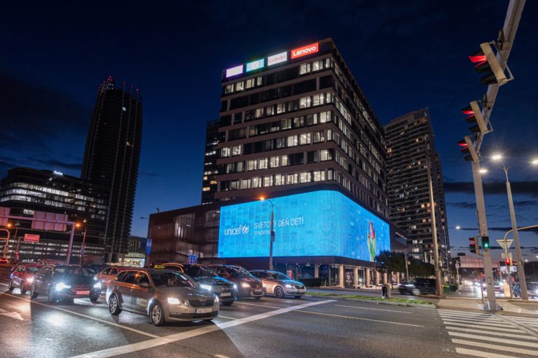 LED fasáda Landererova 12 v Bratislave. Foto: UNICEF