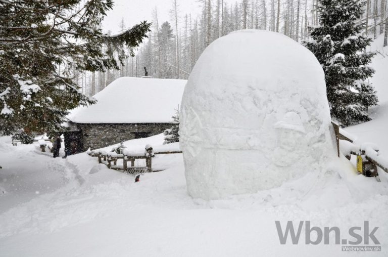 Veľkonočná kraslica zo snehu pri Rainerovej útulni vo Vysokých Tatrách. Vysoké Tatry, 3. apríl 2015. Foto: SITA/Radoslav Maťaš