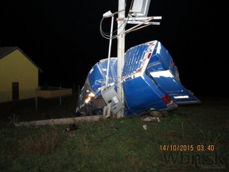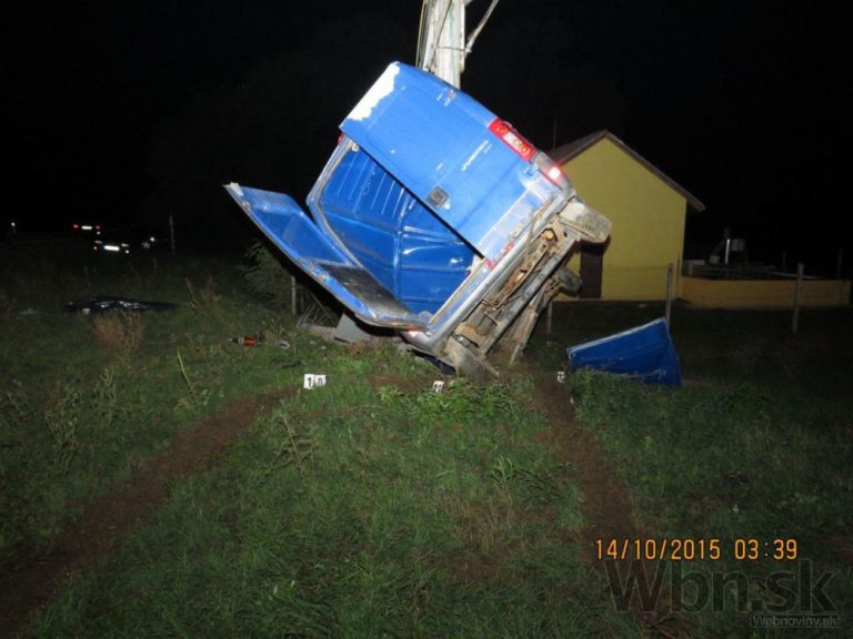 Iba 19-ročný vodič Citroënu Jumper nezvládol zákrutu, zišiel z cesty a narazil do betónového stĺpa. Foto: SITA/KR PZ Košice