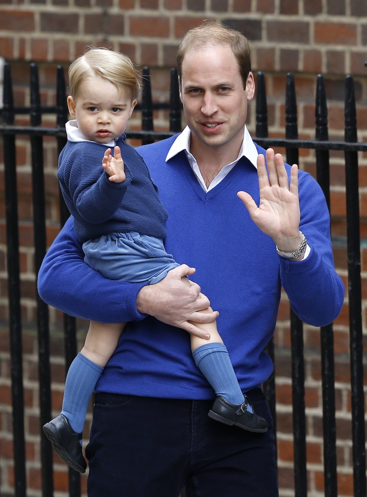Britský princ William a jeho syn George počas návštevy v nemocnici, kde prišlo na svet dievčatko. Bábätko sa narodilo v sobotu 2. mája o 8:34 miestneho času a po narodení vážilo približne 3700 gramov. Foto: SITA/AP
