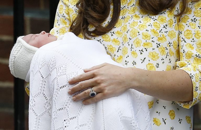 Briti sa radujú z narodenia kráľovského potomka. Dievčatko prišlo na svet v sobotu 2. mája o 8:34 miestneho času a po narodení vážila približne 3700 gramov. Foto: SITA/AP