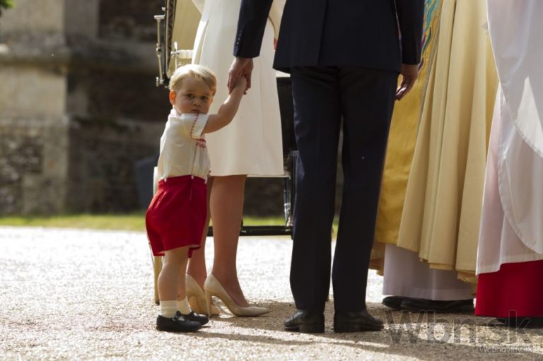 Princeznú Charlotte, ktorá sa 2. mája narodila britskému kráľovskému páru vojvodovi a vojvodkyni z Cambridgeu, v nedeľu pokrstili v kostole svätej Márie Magdalény v Sandringhame v grófstve Norfolk. Jej krstnými rodičmi sa stala kamarátka princa Williama a jeho manželky Catherine Sophie Carter, Williamova sesternica Laura Fellowes a jeho kamaráti James Meade a Thomas van Straubenzee a tiež Catherinin bratranec Adam Middleton. Na fotografii: Princ George. Anglicko, 5. júla 2015. Foto: SITA/AP