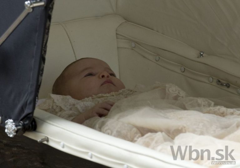 Princeznú Charlotte, ktorá sa 2. mája narodila britskému kráľovskému páru vojvodovi a vojvodkyni z Cambridgeu, v nedeľu pokrstili v kostole svätej Márie Magdalény v Sandringhame v grófstve Norfolk. Jej krstnými rodičmi sa stala kamarátka princa Williama a jeho manželky Catherine Sophie Carter, Williamova sesternica Laura Fellowes a jeho kamaráti James Meade a Thomas van Straubenzee a tiež Catherinin bratranec Adam Middleton. Na fotografii: Malá princezná Charlotte. Anglicko, 5. júla 2015. Foto: SITA/AP