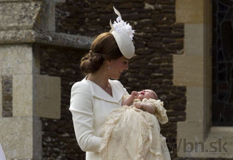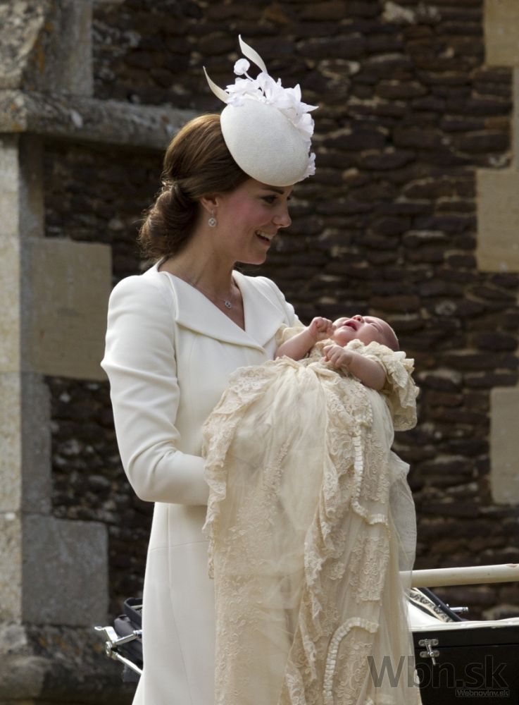 Princeznú Charlotte, ktorá sa 2. mája narodila britskému kráľovskému páru vojvodovi a vojvodkyni z Cambridgeu, v nedeľu pokrstili v kostole svätej Márie Magdalény v Sandringhame v grófstve Norfolk. Jej krstnými rodičmi sa stala kamarátka princa Williama a jeho manželky Catherine Sophie Carter, Williamova sesternica Laura Fellowes a jeho kamaráti James Meade a Thomas van Straubenzee a tiež Catherinin bratranec Adam Middleton. Na fotografii: Vojvodkyňa z Cambridgeu a malá princezná Charlotte. Anglicko, 5. júla 2015. Foto: SITA/AP