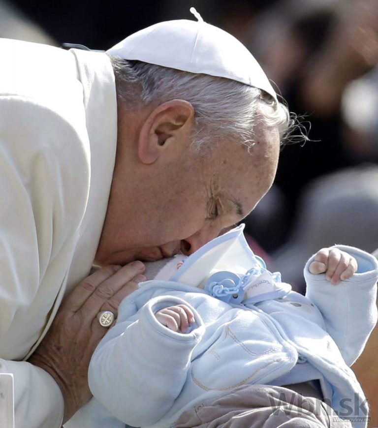 Pápež František bozkáva dieťa na Námestí sv. Petra. Foto: SITA