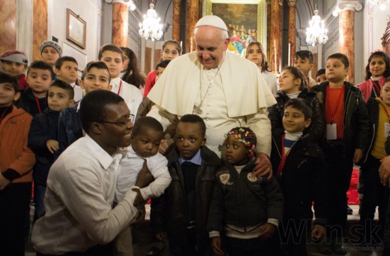 Pápež František sa na návšteve v Turecku stretol s deťmi utečencov. Foto: SITA