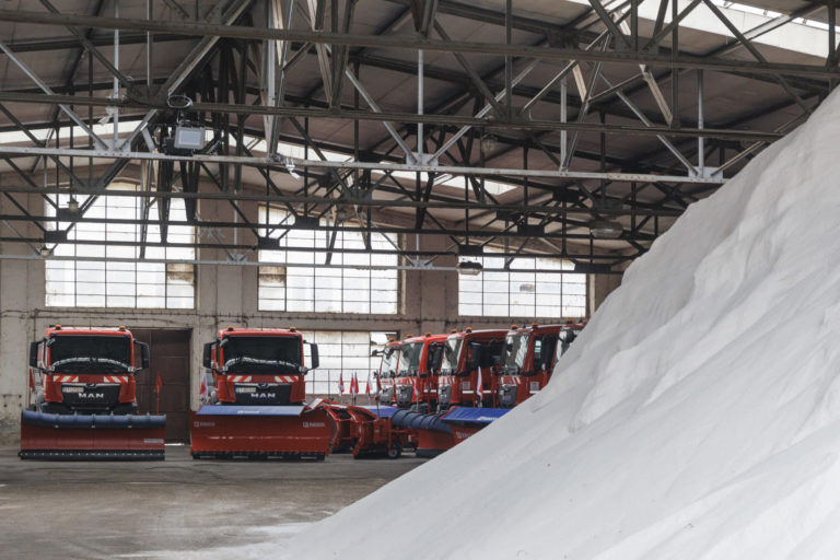 Priestory Komunálneho podniku Bratislava na Bazovej ulici počas príprav na zimnú údržbu. Bratislava, 15. december 2022. Foto: SITA/Branislav Bibel