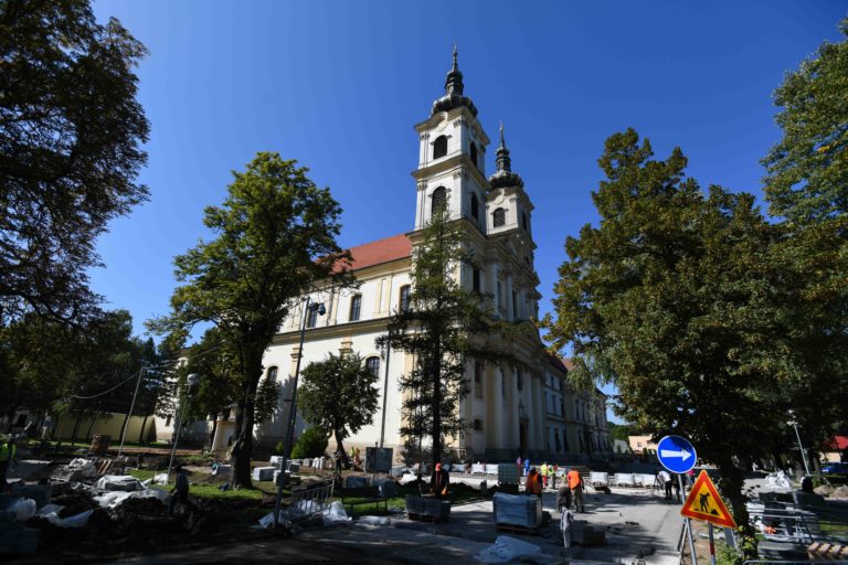 Stavebné práce v okolí Baziliky Sedembolestnej Panny Márie v Šaštíne - Strážach pred príchodom pápeža Františka. Foto: archívne, SITA/Martin Medňanský