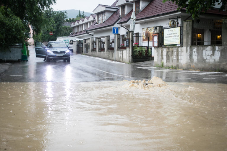 Pohľad na zatopenú cestu v MČ Bratislava Devín v dôsledku silnej búrky sprevádzanej hustým dažďom v hlavnom meste. Bratislava, 6. jún 2018. Foto: SITA/Jana Birošová