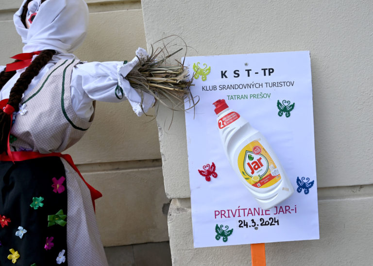 Pozvánka na podujatie 68. ročníka Privítania jari v Prešove, ktorého súčasťou bol sprievod k rieke Torysa a následne symbolické pálenie Moreny. Podujatie pripravil klub slovenských turistov regiónu Prešov, Olympijský klub Prešov, OZ Šariš Lesy SR a mestom Prešov. Prešov, 24. marec 2024. Foto: SITA/Viktor Zamborský