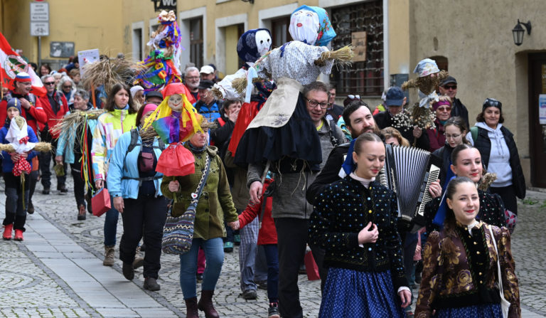 Klub slovenských turistov regiónu Prešov, Olympijský klub Prešov, OZ Šariš Lesy SR a Mesto Prešov pripravili podujatie 68. ročník Privítania jari, ktorého súčasťou bol sprievod k rieke Torysa a následne symbolické pálenie Moreny. Prešov 24. marec 2024. Foto: SITA/Viktor Zamborský
