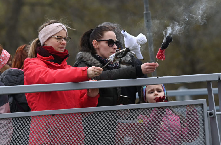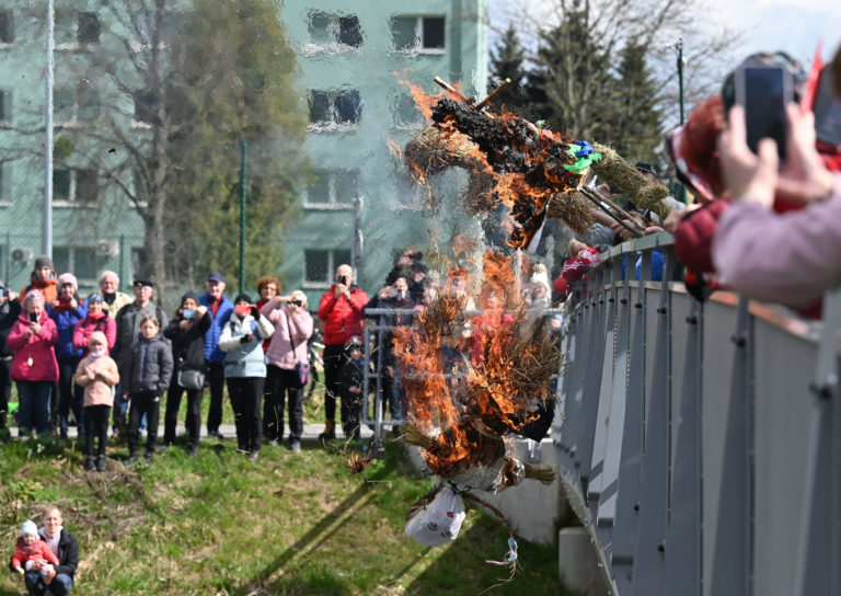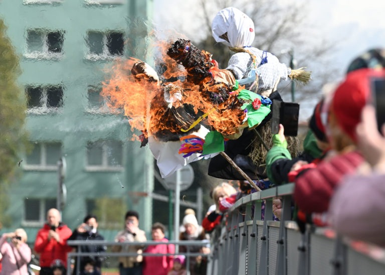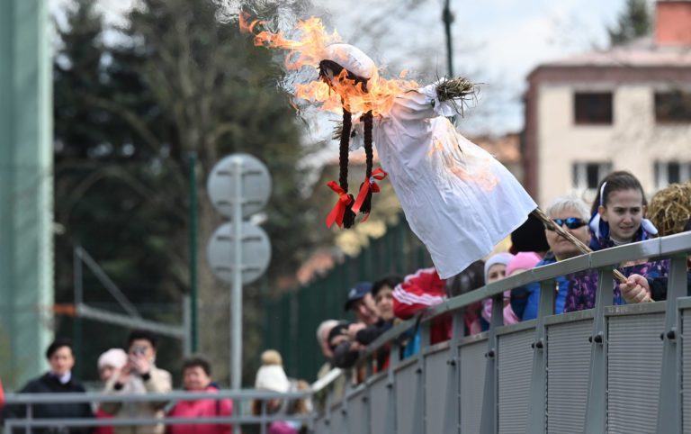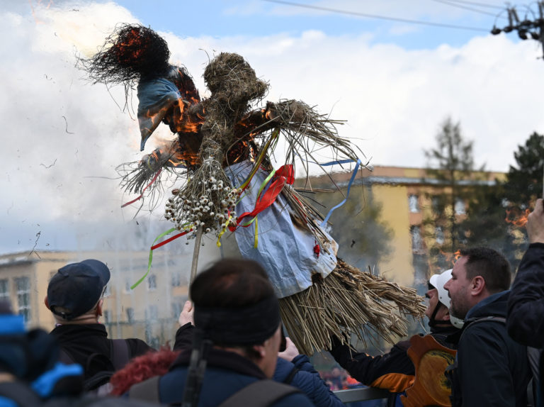 Klub slovenských turistov regiónu Prešov, Olympijský klub Prešov, OZ Šariš Lesy SR a Mesto Prešov pripravili podujatie 68. ročník Privítanie jari, ktorého súčasťou bol sprievod k rieke Torysa a následne symbolické pálenie Moreny. Prešov 24. marec 2024. Foto: SITA/Viktor Zamborský