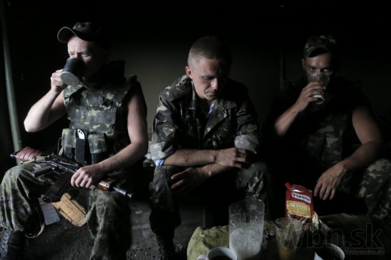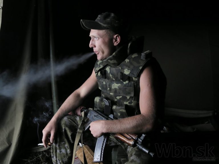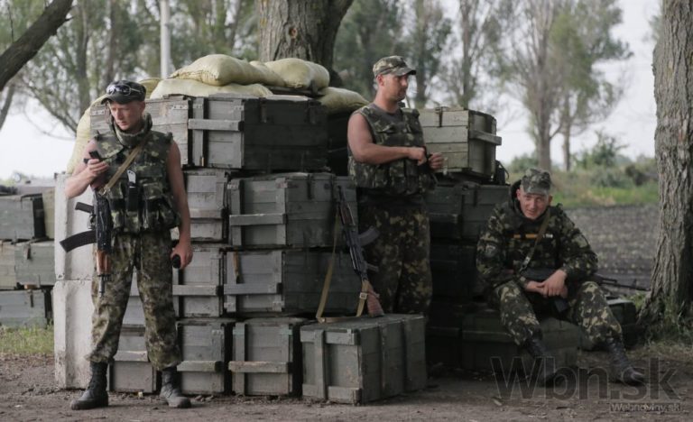 Ukrajinskí vojaci strážia kontrolný bod neďaleko Slovjansku. Proruskí separatisti zostrelili vo štvrtok na východe Ukrajiny vládny vojenský vrtuľník. Incident si vyžiadal životy celej posádky. Foto: SITA/AP