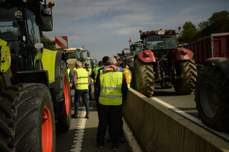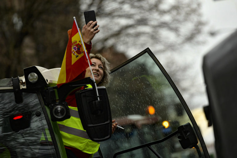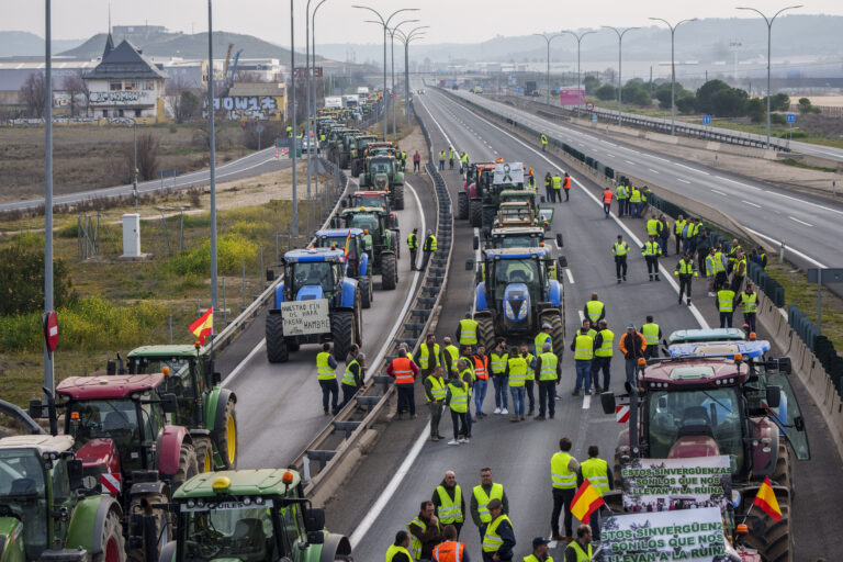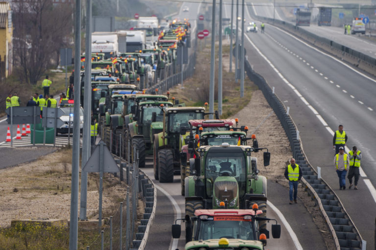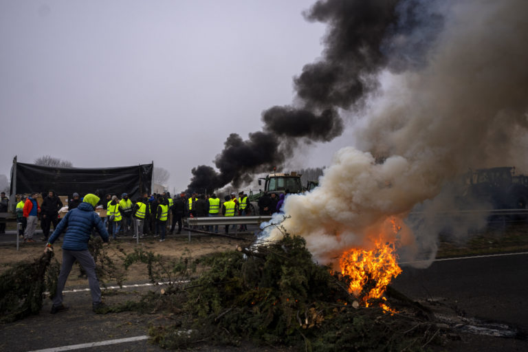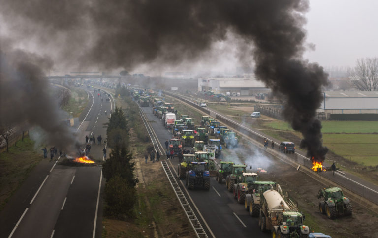 Poľnohospodári v Španielsku tri dni bez prestávky organizujú protesty po celej krajine, blokujú diaľnice a spôsobujú dopravné zápchy. Foto: SITA/AP