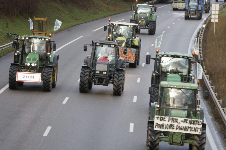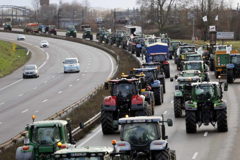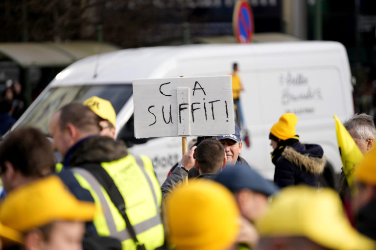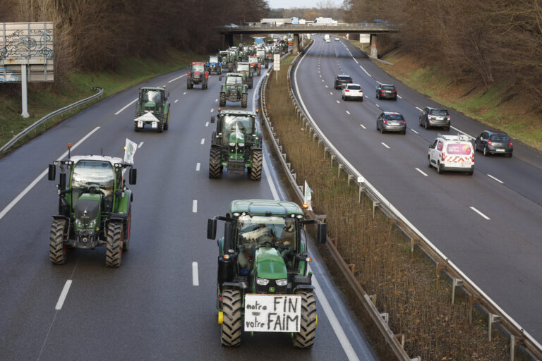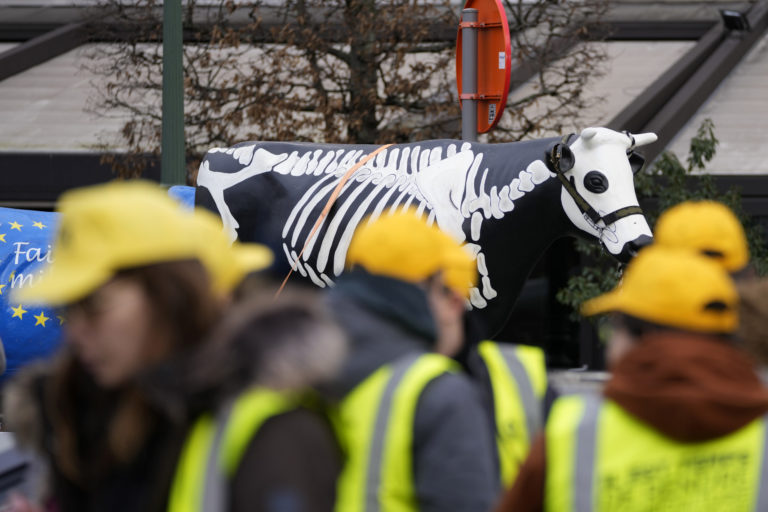 Francúzski farmári po celej krajine aj v Bruseli organizovali protesty proti nízkym zárobkom, rastúcim nákladom a proti nadmernej regulácii. Foto: SITA/AP