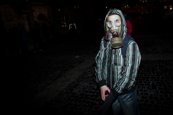 Účastník protestu Gorila - 3. v Bratislave. Bratislava, 10. február 2012. Foto: SITA/Jozef Jakubčo