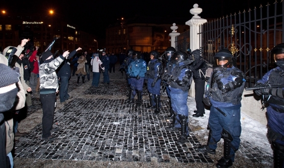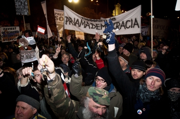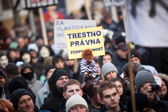 Účastníci protestu Gorila - 3. v Bratislave na Námestí SNP. Bratislava, 10. február 2012. Foto: SITA/Diana Černáková