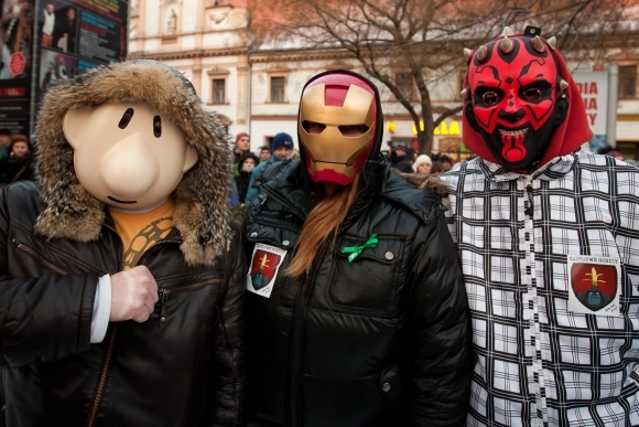 Účastníci protestu Gorila - 3. v Bratislave. Bratislava, 10. február 2012. Foto: SITA/Jozef Jakubčo