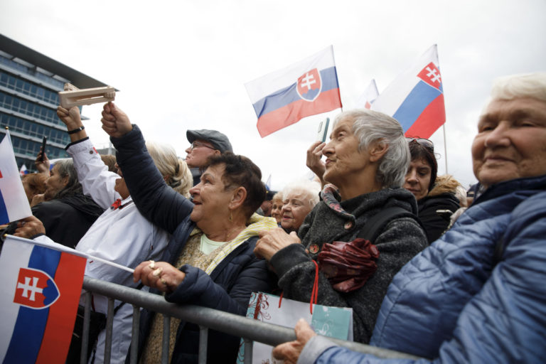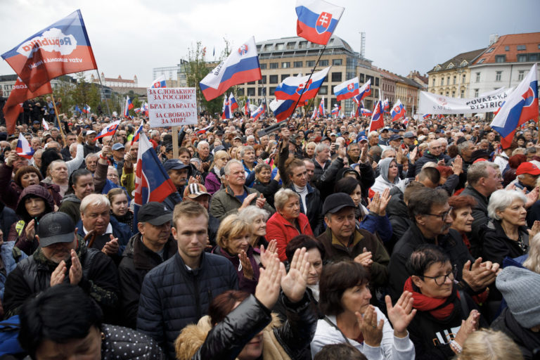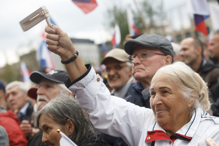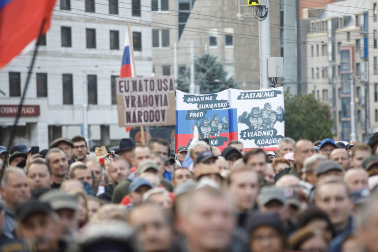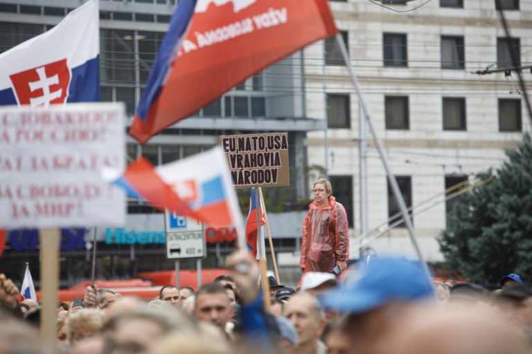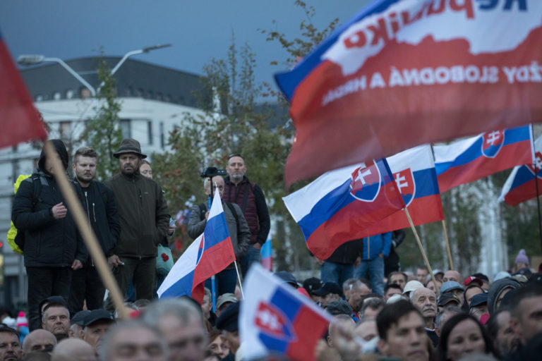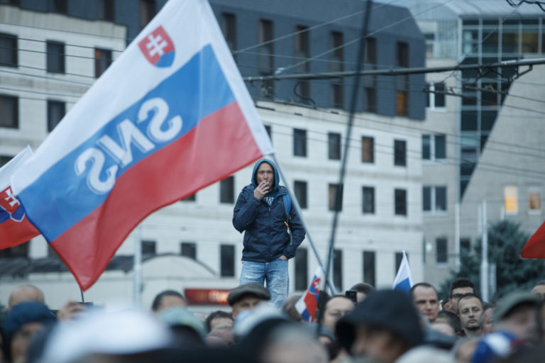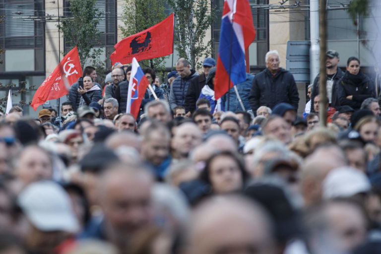 Atmosféra počas protivládneho protestu za predčasné voľby a za efektívny boj so zdražovaním, ktorý organizovala strana Smer - sociálna demokracia pred Prezidentským palácom. Bratislava, 20. september 2022. Foto: SITA/Branislav Bibel