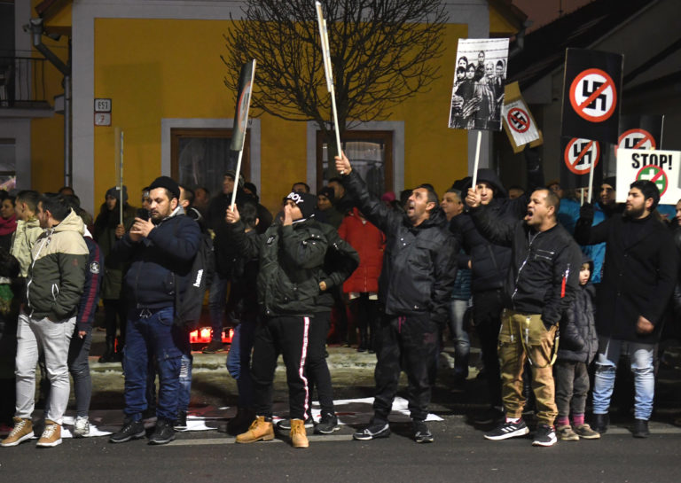 Predseda hnutia PS Michal Truban (uprostred) počas protestu s názvom Postavme sa nenávisti a extrémistom, alebo Nenechávajme Kotlebovcov samých, ktorý organizuje hnutie Progresívne Slovensko (PS) a strana SPOLU v Sabinove. Sabinov, 15. január 2020. Foto: SITA/PS/SPOLU