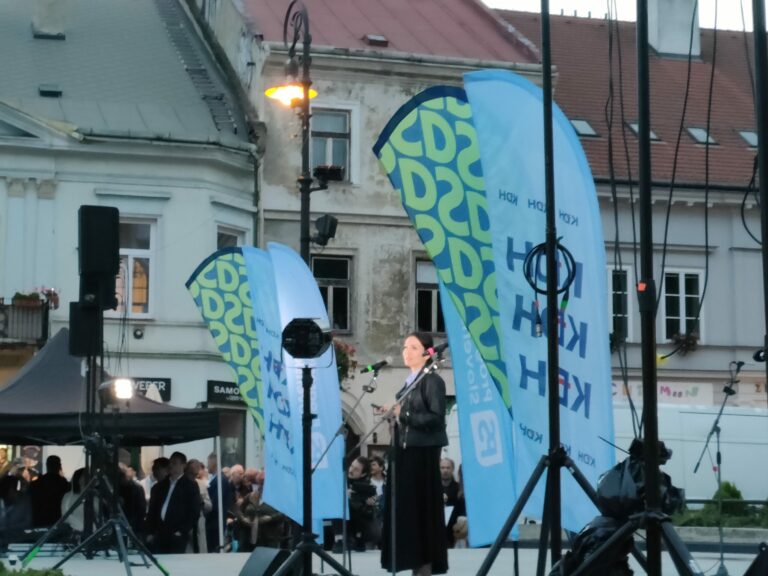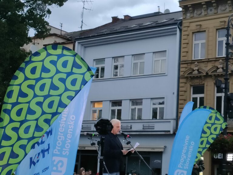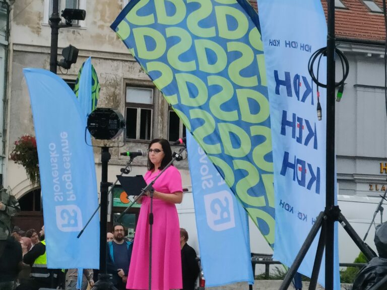Poslankyňa Beáta Jurík (Progresívne Slovensko) na proteste proti ožobračovaniu v Košiciach (16. september 2025). Foto: SITA/Katarína Lörincová.