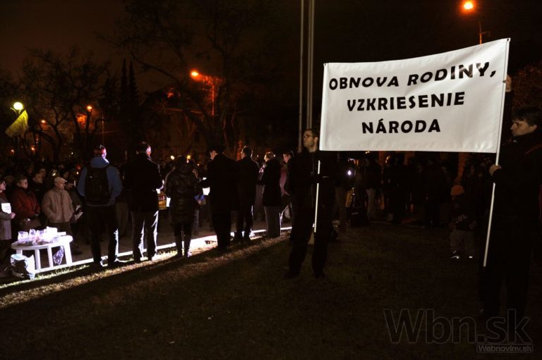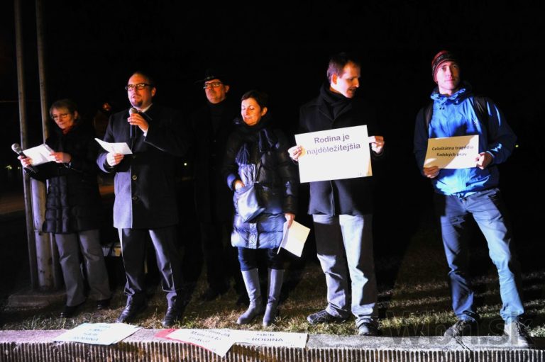 Protestné zhromaždenie proti obsahu a forme Celoštátnej stratégie ochrany a podpory ľudských práv v SR, schválenej Radou vlády pre ľudské práva, národnostné menšiny a rodovú rovnosť. Bratislava, 16. december 2014.