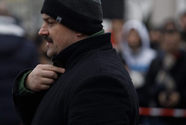 Predseda ĽSNS Marian Kotleba počas protestu organizovaného stranou Kotlebovci – Ľudová strana Naše Slovensko (ĽSNS) proti vláde Igora Matoviča a protiepidemiologickým opatreniam v súvislosti s COVID-19 pred Prezidentským palácom. Bratislava, 12. december 2020. Foto: SITA/Branislav Bibel