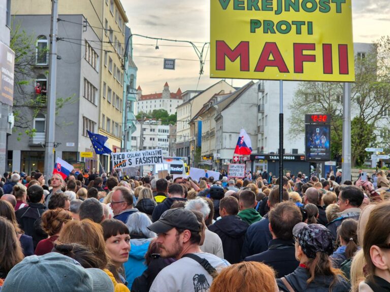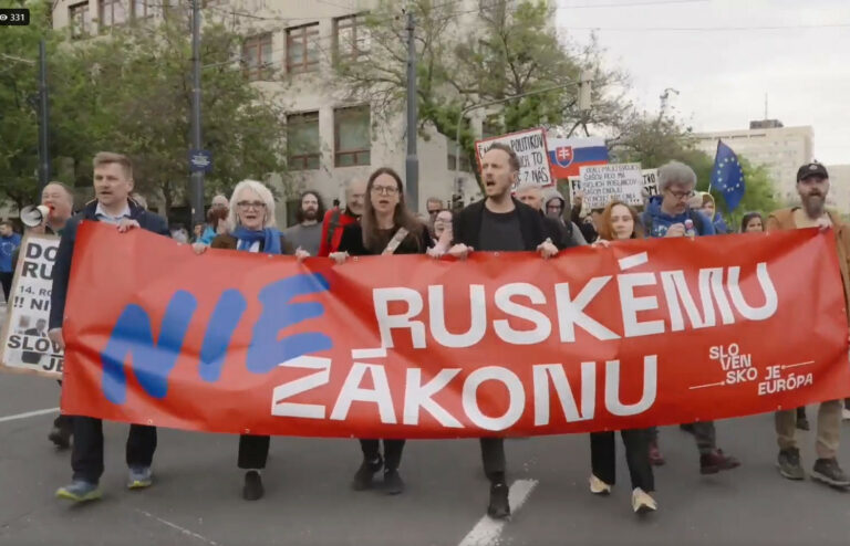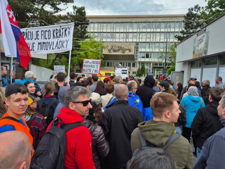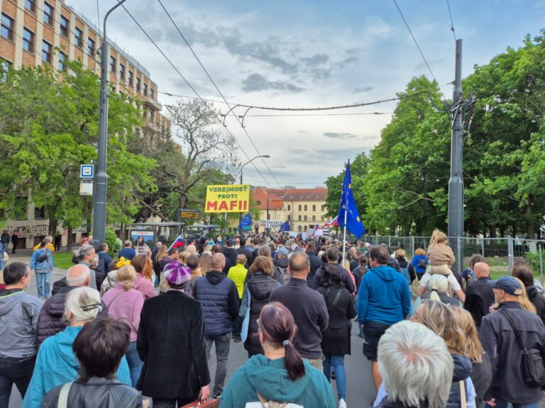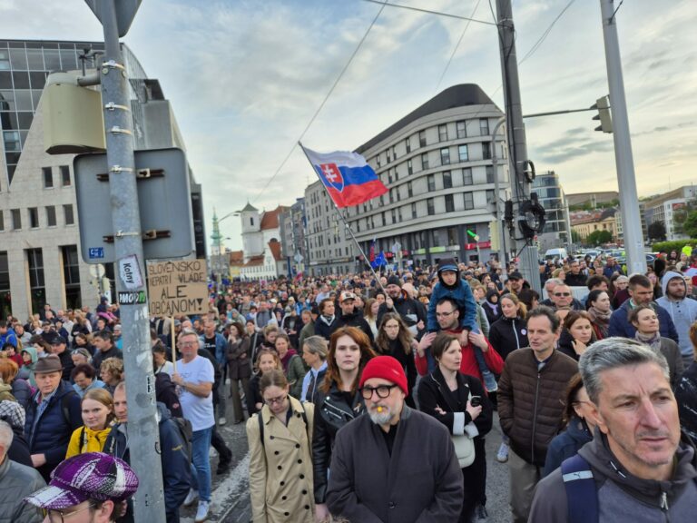 Účastníci protestu Slovensko je Európa a Nie „ruskému“ zákonu. Bratislava, 24. apríl 2025. Foto: SITA.