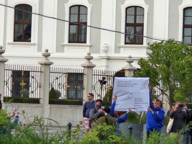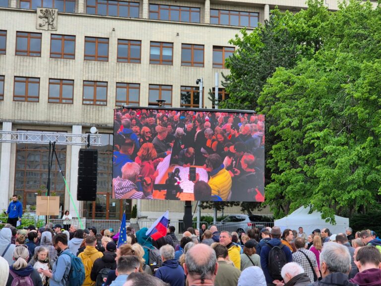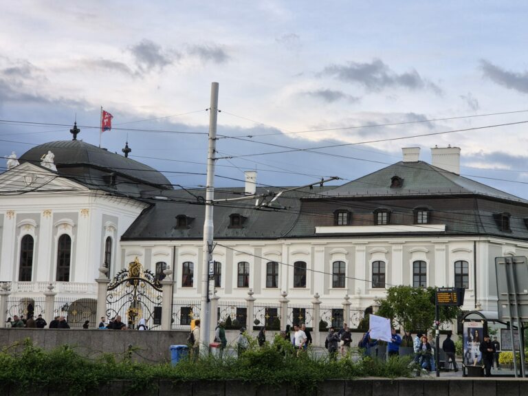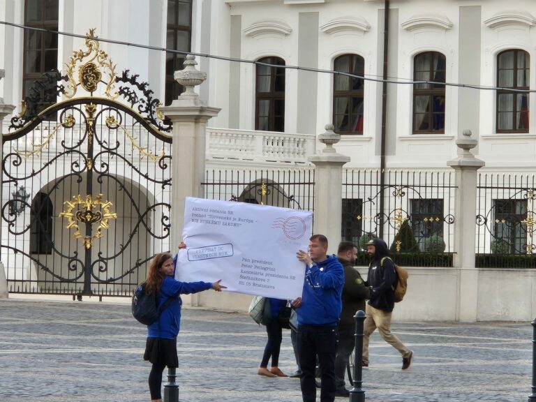 Účastníci zhromaždenia Slovensko je Európa na ceste k Prezidentskému palácu. Štvrtok, 24. apríl, 2025. Reprofoto: www.facebook.com