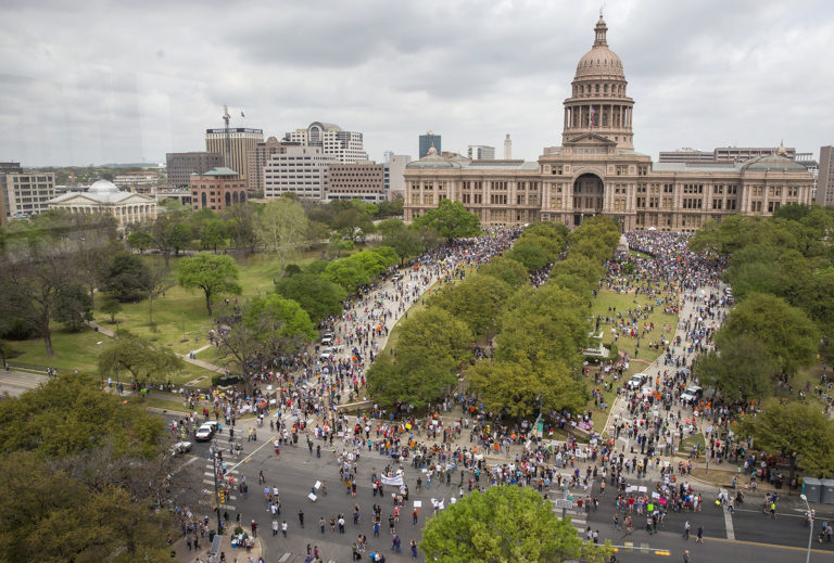 Tisícky ľudí sa zišli na protestoch v Austine po streľbe na strednej škole v Parklande, Austin, Texas, 24. marec 2018 Foto: SITA/AP