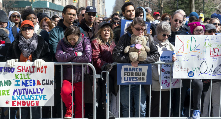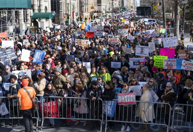 Stovky ľudí na proteste po streľbe na strednej škole v Parklande, New York, New York, 24. marec 2018 Foto: SITA/AP