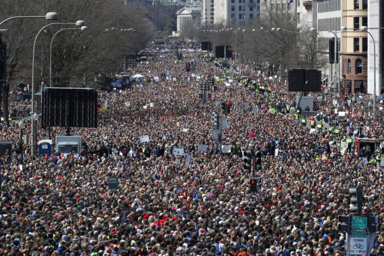 Tisíce ľudí zaplnili Pennsylvania Avenue na protestoch proti násiliu so zbraňami, Washington, USA, 24. marec 2018 Foto: SITA/AP