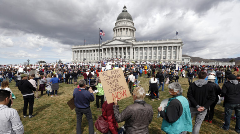 Tisícky protestujúcich pred vládnou budovou Capitol v Salt Lake City, Utah, 24. marec 2018 Foto: SITA/AP