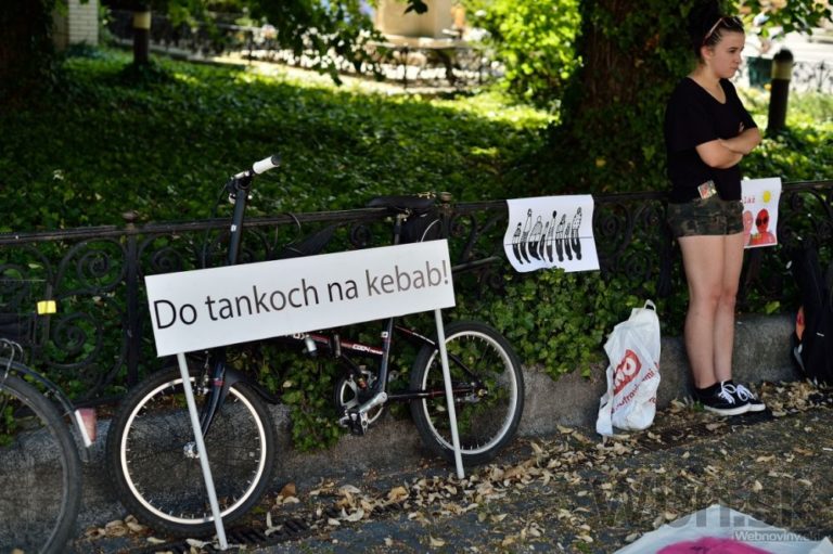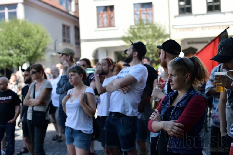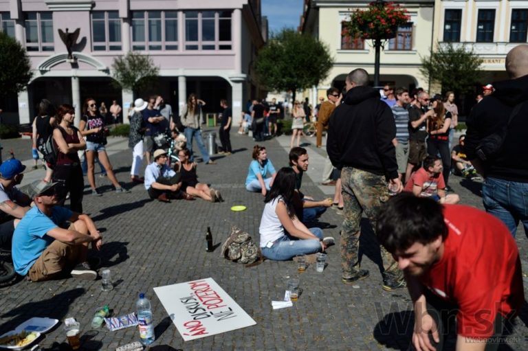 Pokojné zhromaždenie proti xenofóbii, rasizmu a nenávisti spojené s neformálnou verejnou zbierkou pre organizáciu, ktorá sa venuje práci s utečencami, na Mariánskom námestí. Žilina, 11. júl 2015. Foto: SITA/Robert Tappert